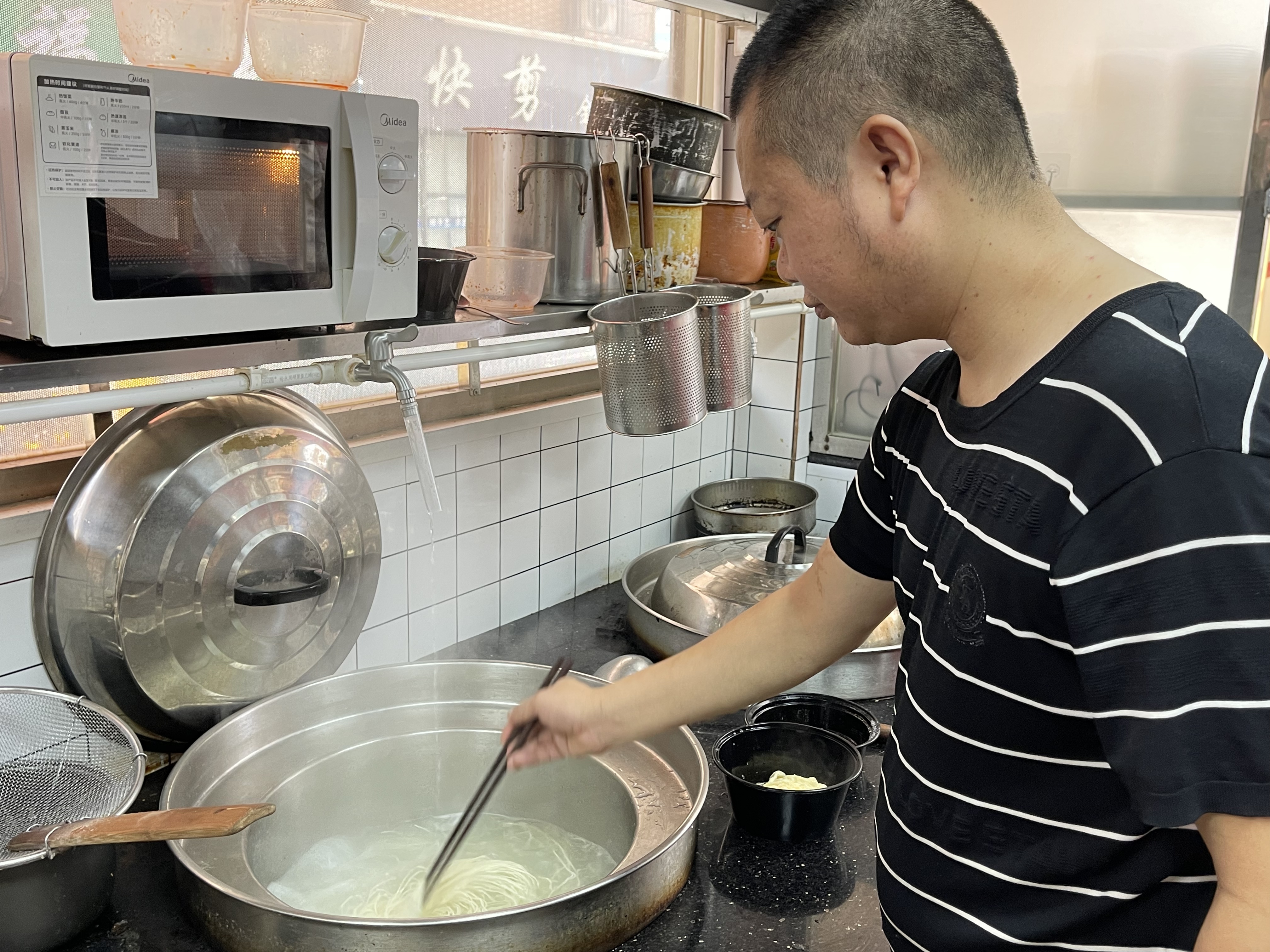从面粉到一碗热气腾腾的面条端上桌,只需一个小时,背后却是苏家三代人39年的匠心坚守。“面粉要好,我们一直用固定品牌,水量更要精准。”小苏道出爷爷传下的手艺精髓。